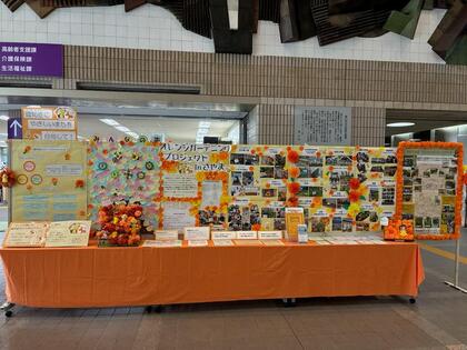 狭山市役所1階エントランスホールにて、2025年9月16日(火曜日)から9月26日(金曜日)にかけて、オレンジガーデニングプロジェクトinさやまの取り組みの様子を展示しました。併せて、認知症に対する正しい理解や予防、狭山市内の認知症予防自主活動団体、介護者支援、相談窓口、権利擁護、虐待防止に関する展示を行いました。