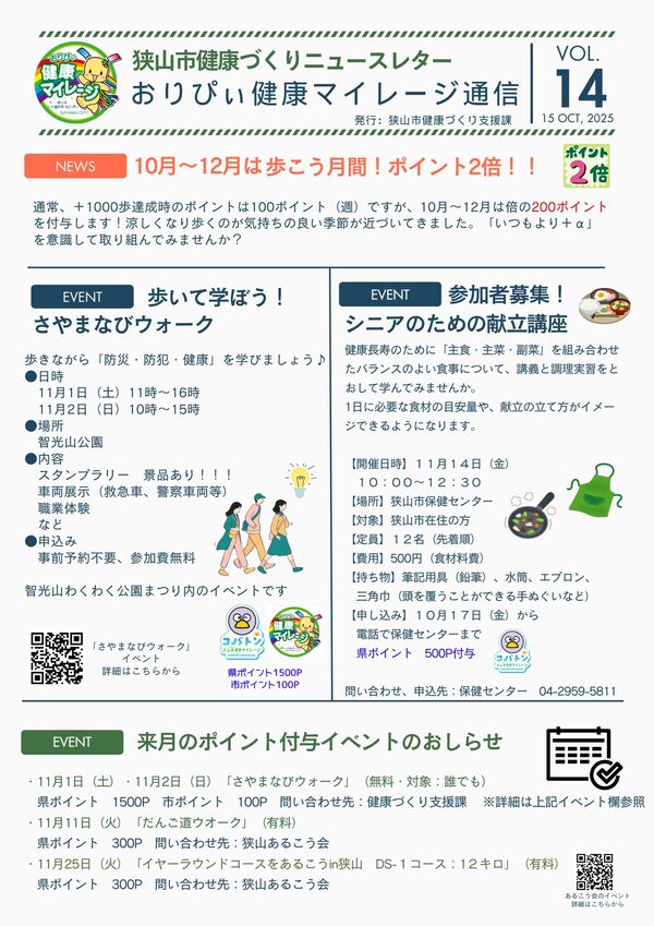 - 2025年10月から12月は歩こう月間!ポイント2倍!!