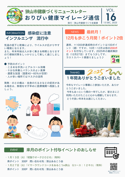 なお、2025年のおりぴぃ健康マイレージ景品発送は2026年1月15日(木曜日)までに登録いただいた情報をもとに実施します。