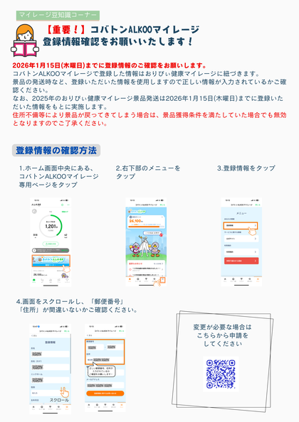 【重要!】コバトンALKOOマイレージ 登録情報確認をお願いいたします!