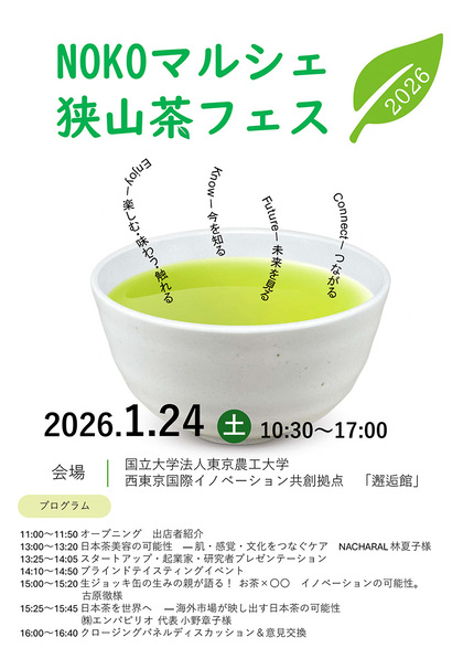 狭山市は国立大学法人東京農工大学と共同で、NOKOマルシェ番外編として狭山茶フェス2026を開催しました。