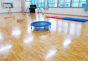 狭山台南保育所は2階建て施設です。見学や園庭開放の際には東門又は西門から園庭にお入りください。