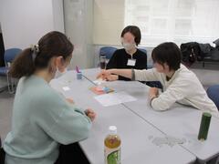 アイスブレイクで緊張をほぐした後、仕事と子育てを両立するために工夫していることを出し合いました。そして、理想の生活を実現するためには、時間や分担の工夫を考え計画を立てる手立てが必要だという考えを出し合いました。