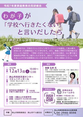 - 「わが子が『学校へ行きたくない』と言いだしたら」2025年12月13日(土曜日)【申込受付中!】