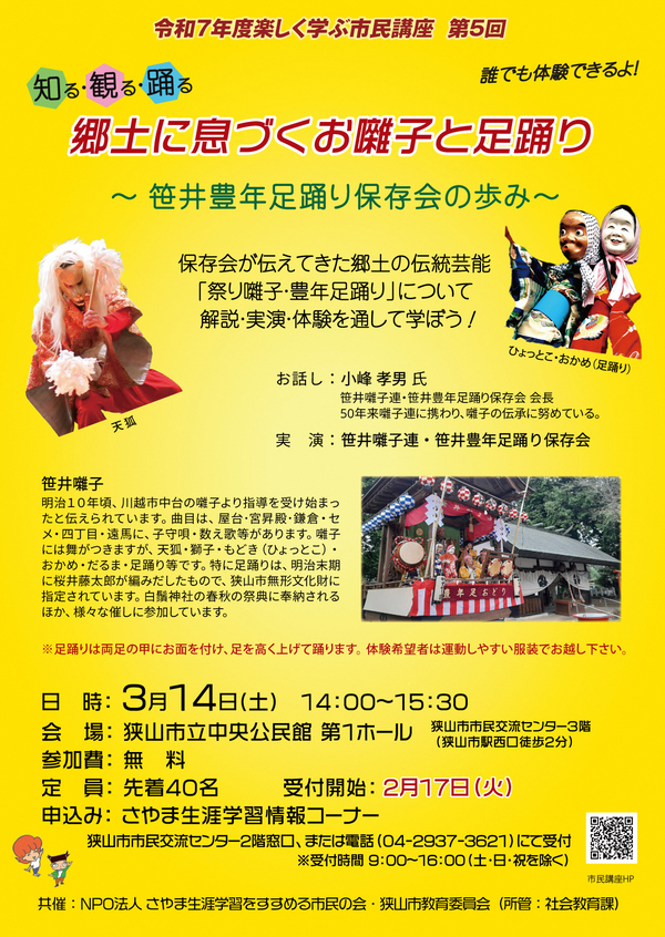「知る・観る・踊る 郷土に息づくお囃子と足踊り ~笹井豊年足踊り保存会の歩み~」