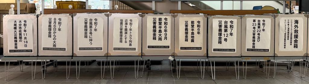 | 令和7年台風第22号及び第23号災害義援金 | 2025年10月23日(木曜日)から | 市役所1階エントランスホール |