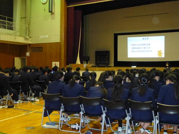 講座に参加した生徒からは「自分たちの中には男らしさや女らしさなど、無意識のうちの固定概念があると思った。その固定概念をなくし、まっさらな気持ちで色々な人と接することが大切だと思った。」「どんな関係でも一人一人尊重されて対等な関係でありたいと思った。」「自分の体や心、相手の体や心を大切にすることが大事だと感じた。」などの感想がありました。