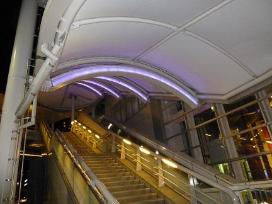 2025年11月1日(土曜日)から30日(日曜日)まで、狭山市駅西口の市民交流センターとセンター前エスカレーターを、「女性に対する暴力をなくす運動」にあわせて、シンボルカラーであるパープル色にライトアップしました。