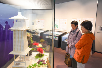 地域に関わるお菓子の歩みと、日本の菓子文化の流れを辿ることができる企画展です。飴や砂糖で作られた工芸菓子に見入り、感嘆の声を上げる来場者たち。古代の文化から懐かしの商品、芸術作品まで多方面からお菓子について知ることができました。