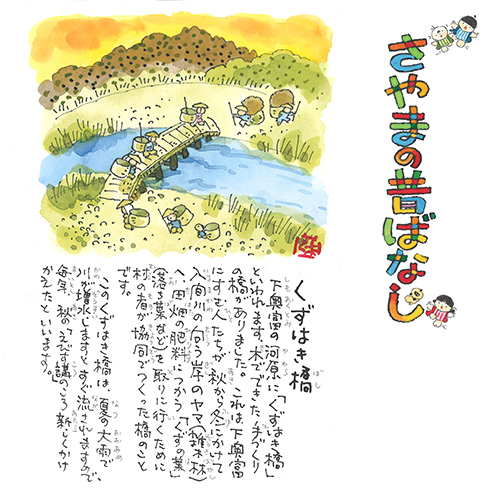 このくずはき橋は、夏の大雨で川が増水しますとすぐ流されますので、毎年、秋の「えびす講」のころ新しくかけかえたといいます。
