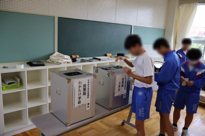2025年9月25日(木曜日)に生徒会役員選挙の演説会及び投票が行われました。投票には実際の選挙で使用されている記載台と投票箱が使用されました。