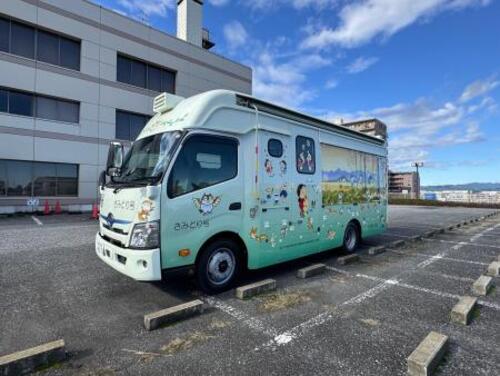 約4,000冊の本を載せて市内を巡回している移動図書館車「さみどり号」が、令和8年4月から新たに「にこにこテラス」へも巡回します。