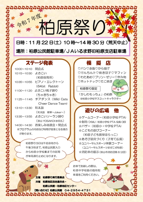 - 2025年11月22日(柏原祭り当日)は、午前8時から午後3時まで、柏原公民館入口から柏原小学校裏までの区間が車両通行止めになります。