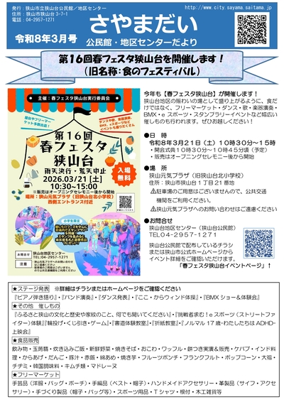 ※第16回春フェスタ狭山台の詳細こちらからご確認ください。