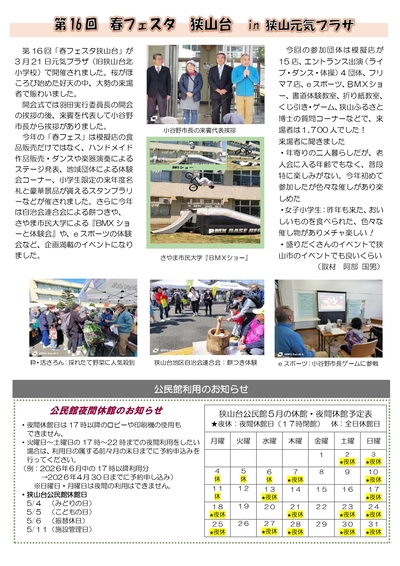 第16回春フェスタ狭山台取材報告、公民館利用のお知らせ