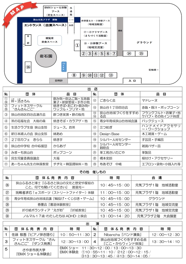 さらに今年はさやま市民大学によるBMXショーと体験会、餅つきやeスポーツの体験会などがあります。