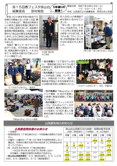 第15回春フェスタ狭山台取材報告、公民館利用のお知らせ