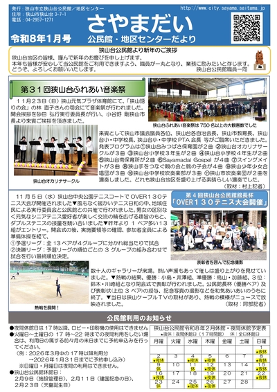 毎月10日発行の狭山台公民館・地区センターだより「さやまだい」の一覧です。