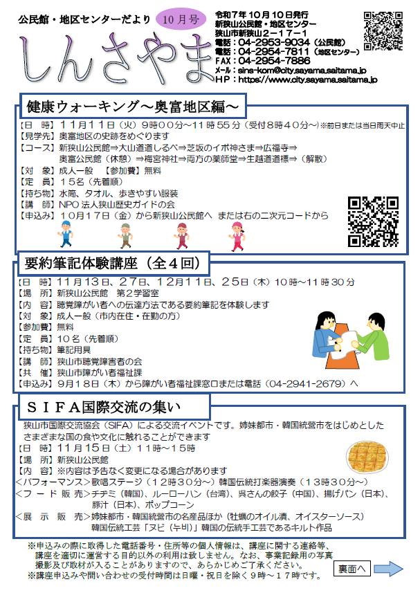 新狭山公民館だより2025年10月号裏面