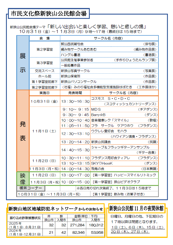 新狭山公民館だより2025年10月号表面