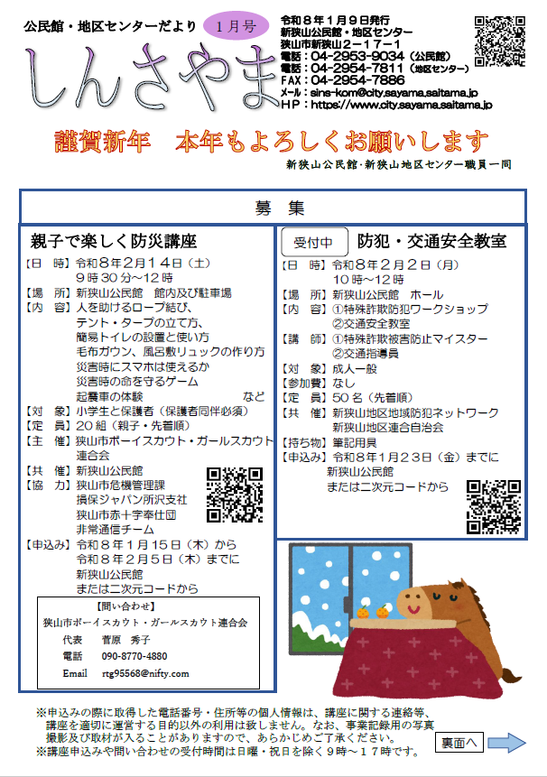新狭山公民館だより2026年1月号(PDF・620KB)
